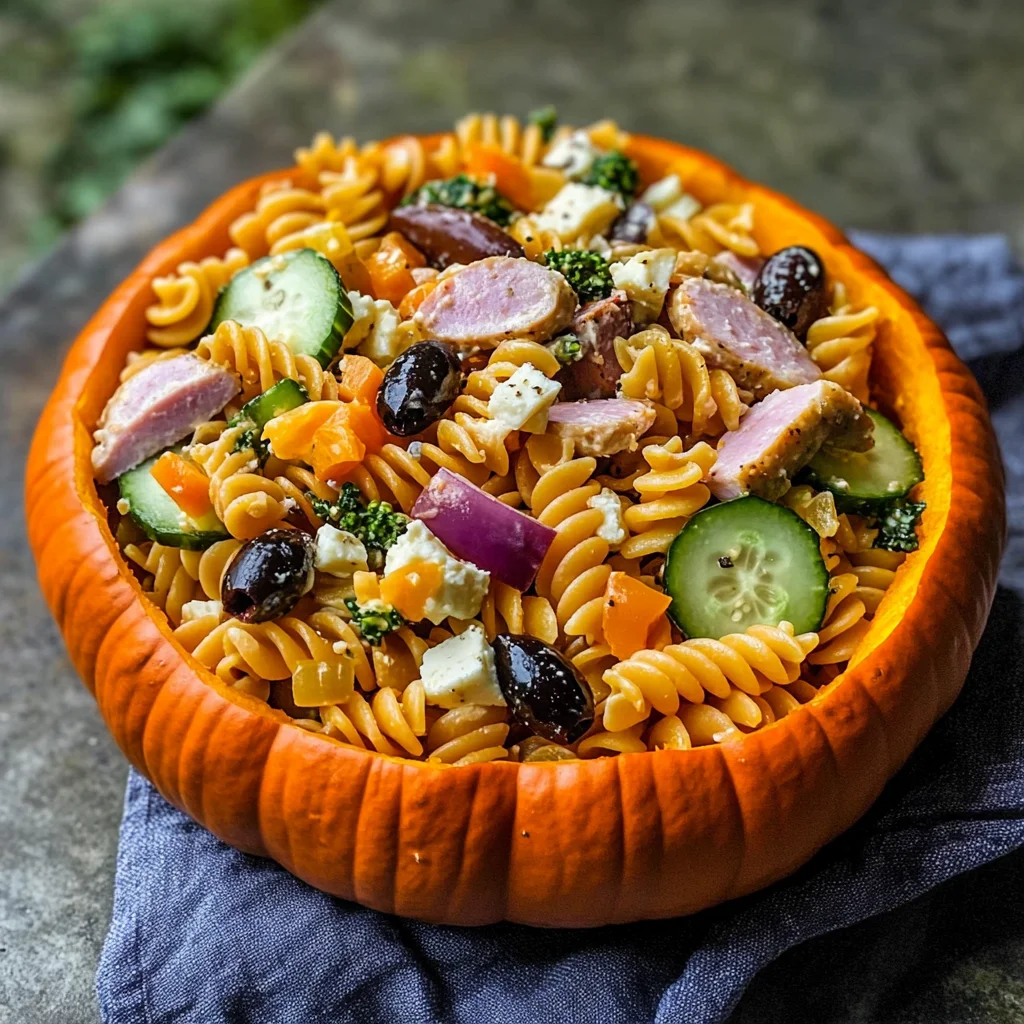 • Serve the pasta salad in a hollowed-out small pie pumpkin for a charming presentation. This adds a seasonal touch and makes it visually appealing.